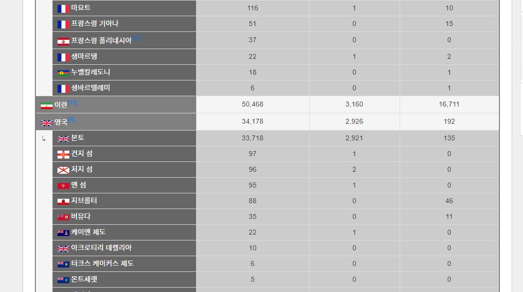 오늘의 영국 코로나 확진자 사망자 등 사진을 보시면 영국 34178명 그리고 사망자는 2926명이네요.