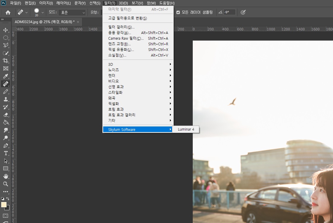 루미나4 프로그램은 자동으로 꺼지고 포토샵으로 이동하면서 포토샵에 있던 사진에 적용이 된답니다.
