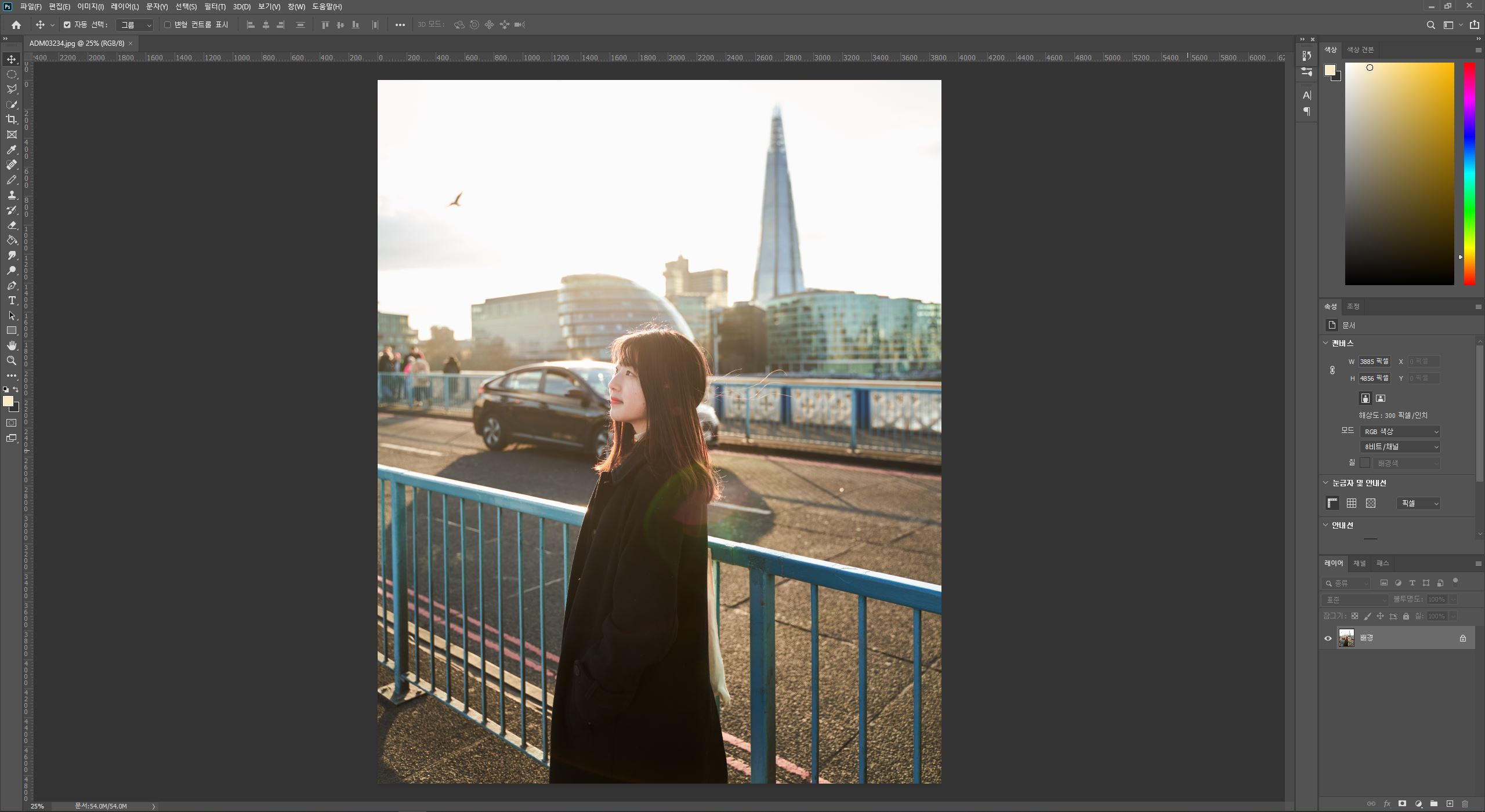 먼저 포토샵을 통해서 위의 사진을 불러왔구요.